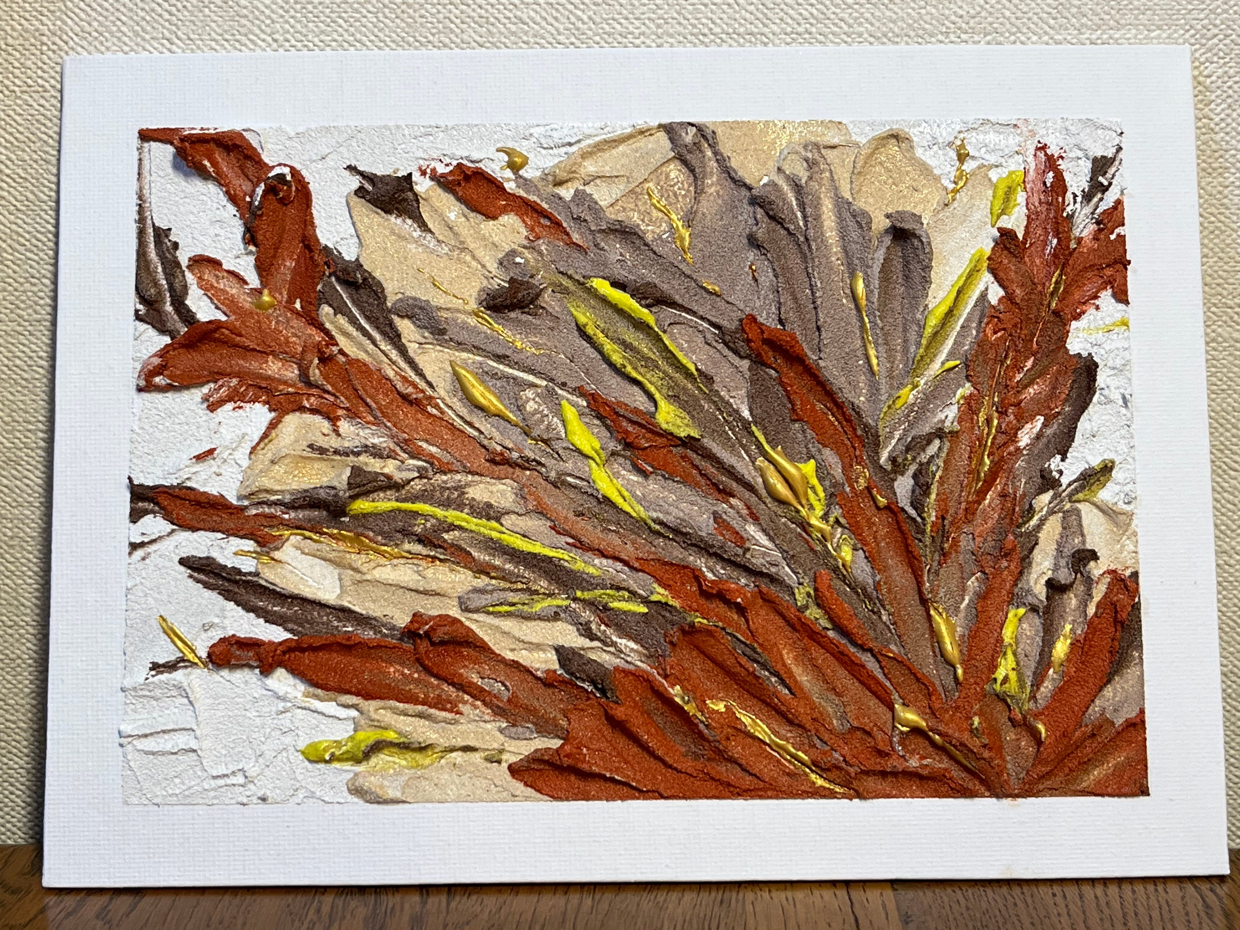 艶やかな紅色の炎が織り成す、心を静める美しい作品です。深い色合いが幻想的な雰囲気を醸し出し、まるで魂の奥深くまで響くような温かさが広がります。日常の喧騒を忘れ、心に安らぎをもたらすひとときへと導いてくれることでしょう。何度も鑑賞することで、心の中に秘めた情熱や思い出を再認識させる存在となり、特別な空間を演出します。