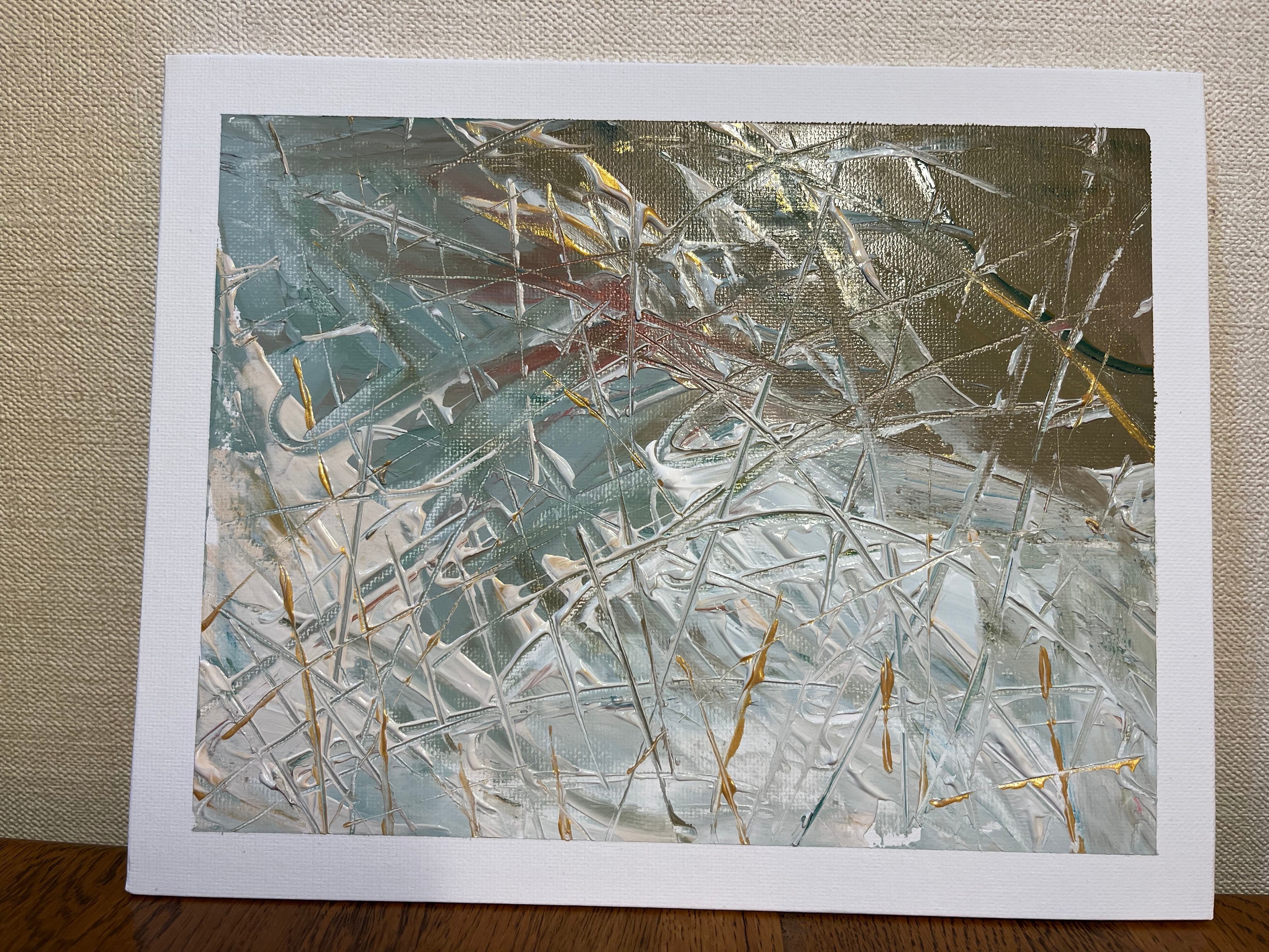艶やかな月光の破片が織り成す、心に響く特別な作品です。淡いブルーときらめくシルバーの色合いが調和し、まるで静寂な夜空の下で月が舞い踊るかのような感覚が広がります。日常の喧騒を忘れ、心に穏やかさと安らぎをもたらす瞬間へと導いてくれることでしょう。何度も眺めることで、心の奥に秘めた思い出や感動が呼び覚まされ、特別な空間を演出します。