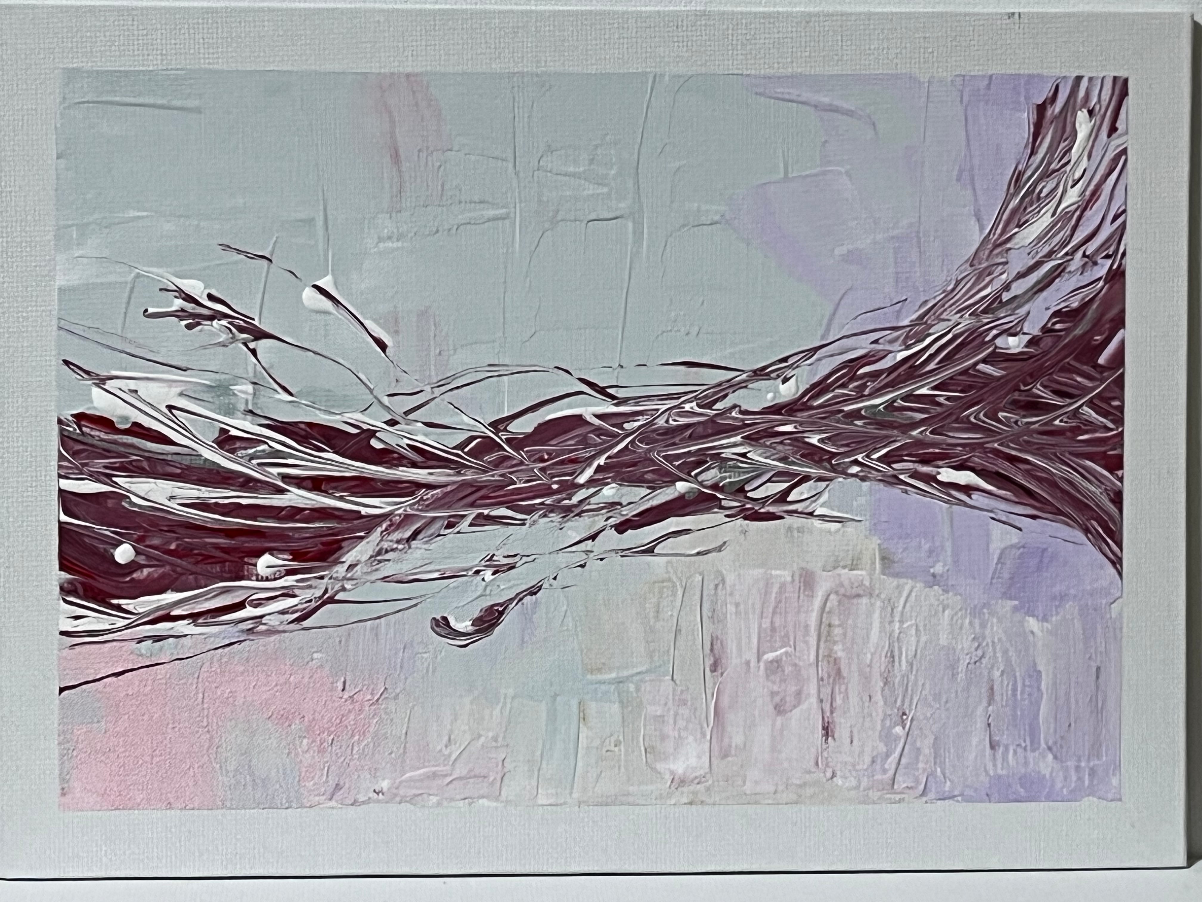 神秘に満ちた赤紫の繊細な糸が織り成す抽象画は、心に深い感動をもたらし、至福のひとときを体験させてくれます。この作品は、静かな美しさが広がり、観る人を夢の世界へと誘います。深いアメジストと柔らかなトーンの絶妙なコントラストが、心の中に豊かな情景を描き出し、安らぎを与えてくれます。特有の色合いと流れが空間に優雅なリズムを与え、穏やかな感覚をもたらします。あなたのインテリアに彩りを添え、心に静かな安息をもたらす一枚としてお楽しみください。