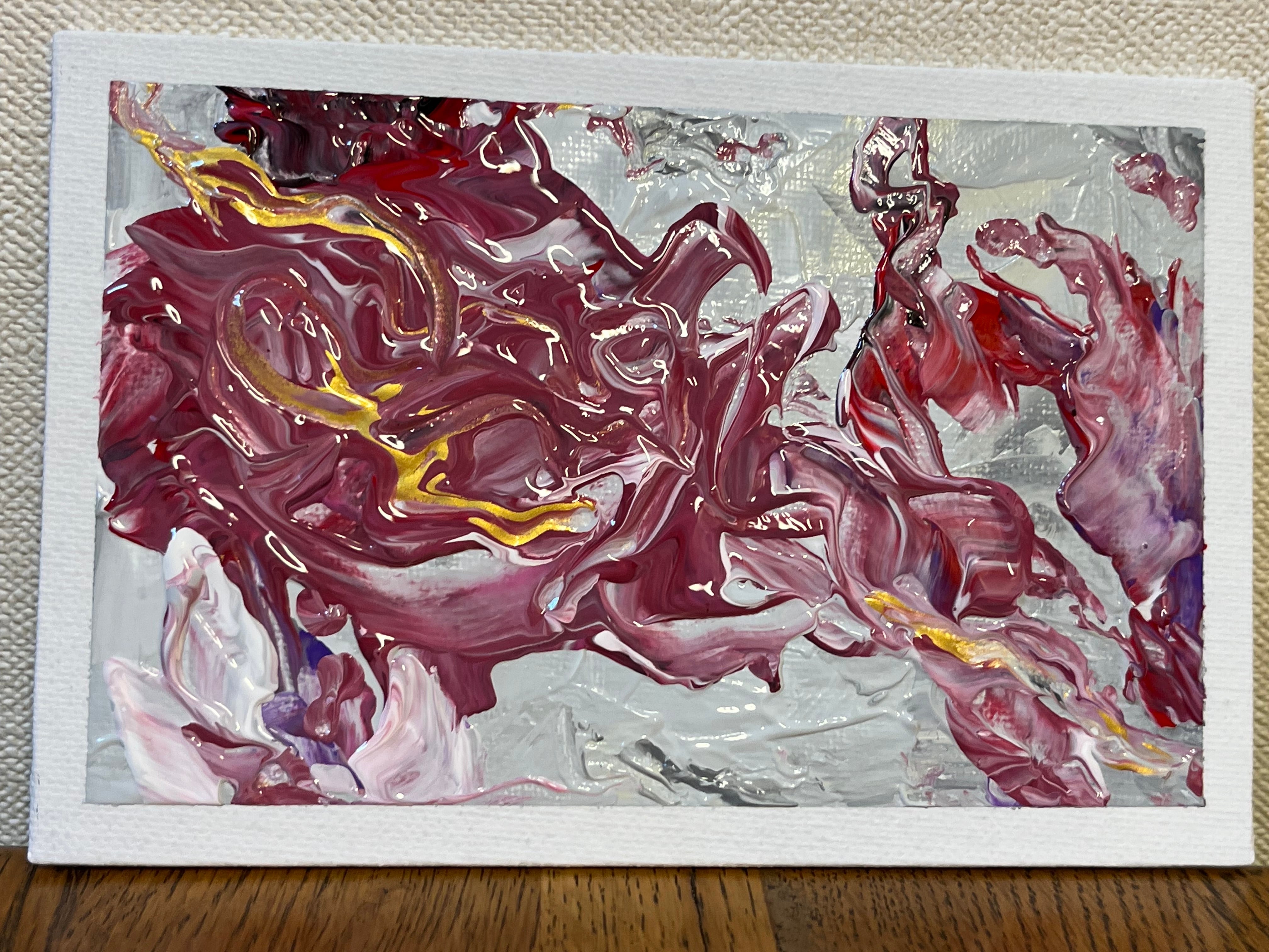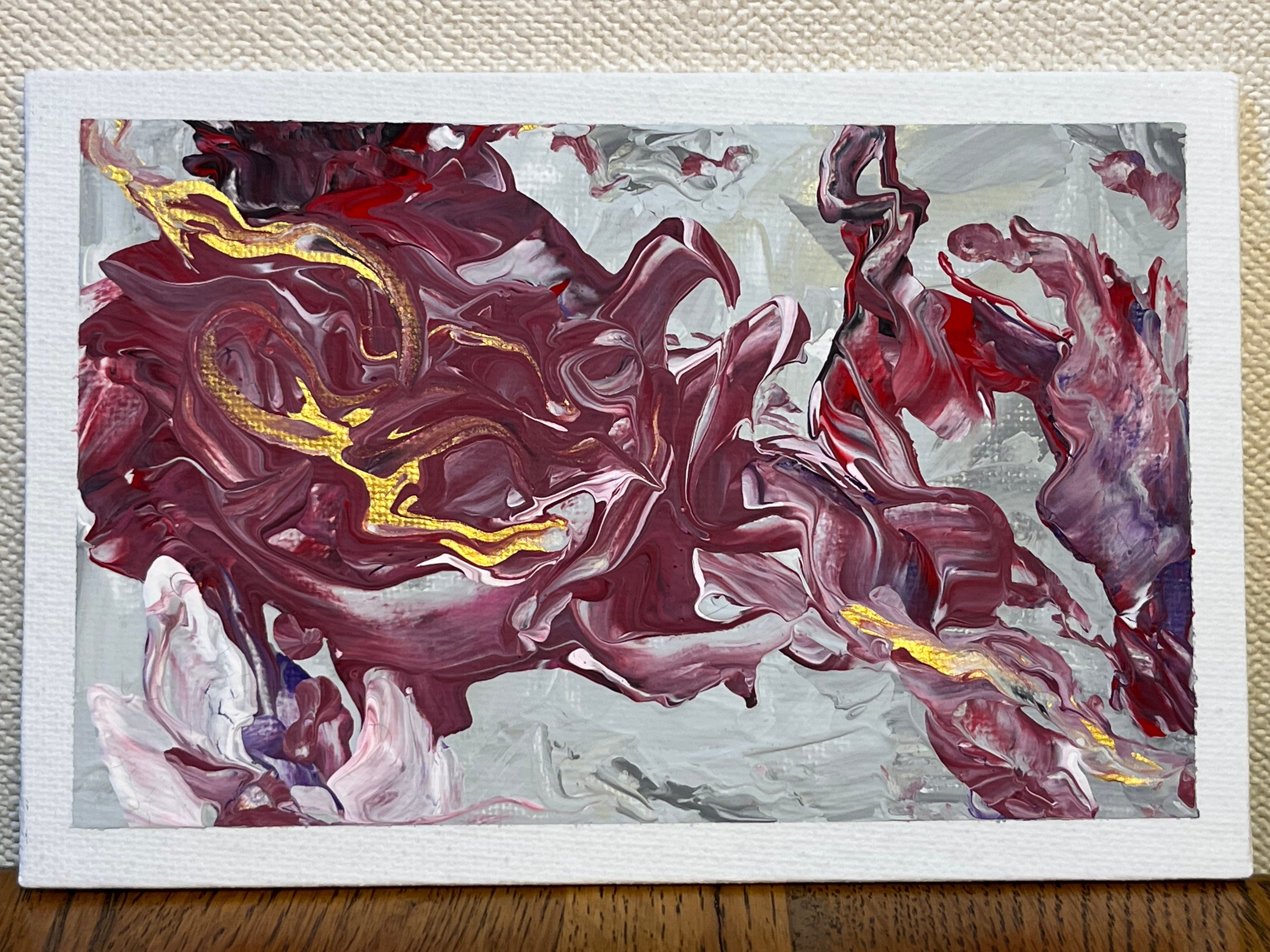 深いバルガンディーの色合いが織りなすこの作品は、あなたの空間に力強さとエレガンスをもたらします。豊かな赤紫のトーンが深い情熱を表現し、観る者に感動を与えることでしょう。見るたびに心の奥に秘めた思いや、未来への希望を思い起こさせる力があります。