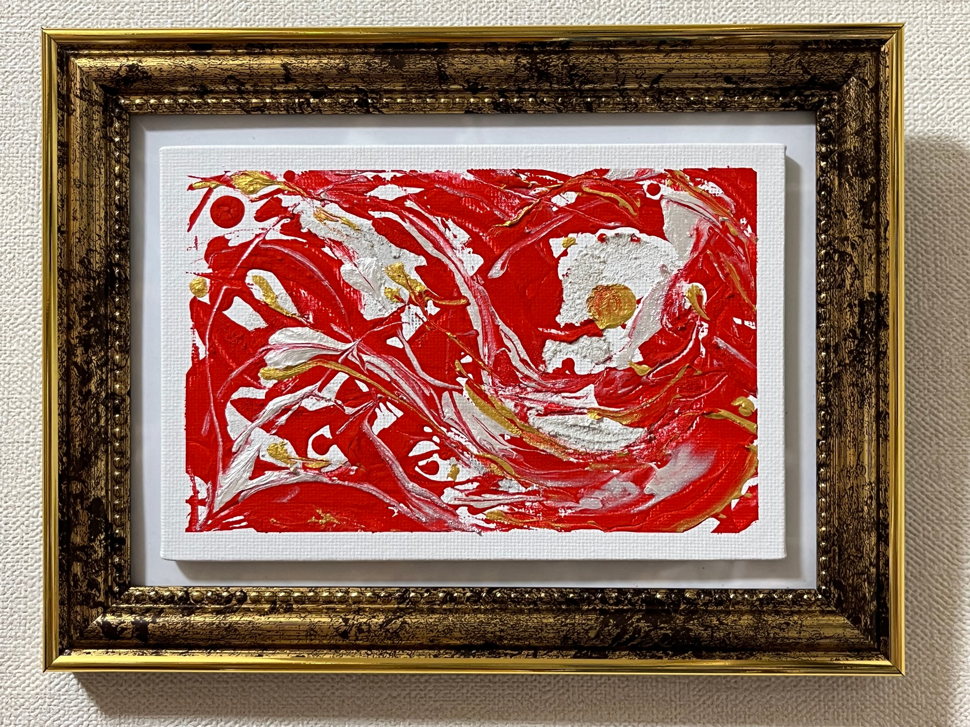 艶やかな真紅の華が織り成す、心を惹きつける美しい作品です。深い赤色と鮮やかなブラックの色合いが調和し、まるで神秘的な夜の世界へと誘われる感覚が広がります。日常の喧騒を忘れ、心にゆったりとした安らぎをもたらす瞬間へと導いてくれることでしょう。何度も眺めることで、心の奥に秘めた思い出や感動が呼び覚まされ、特別な空間を演出します。