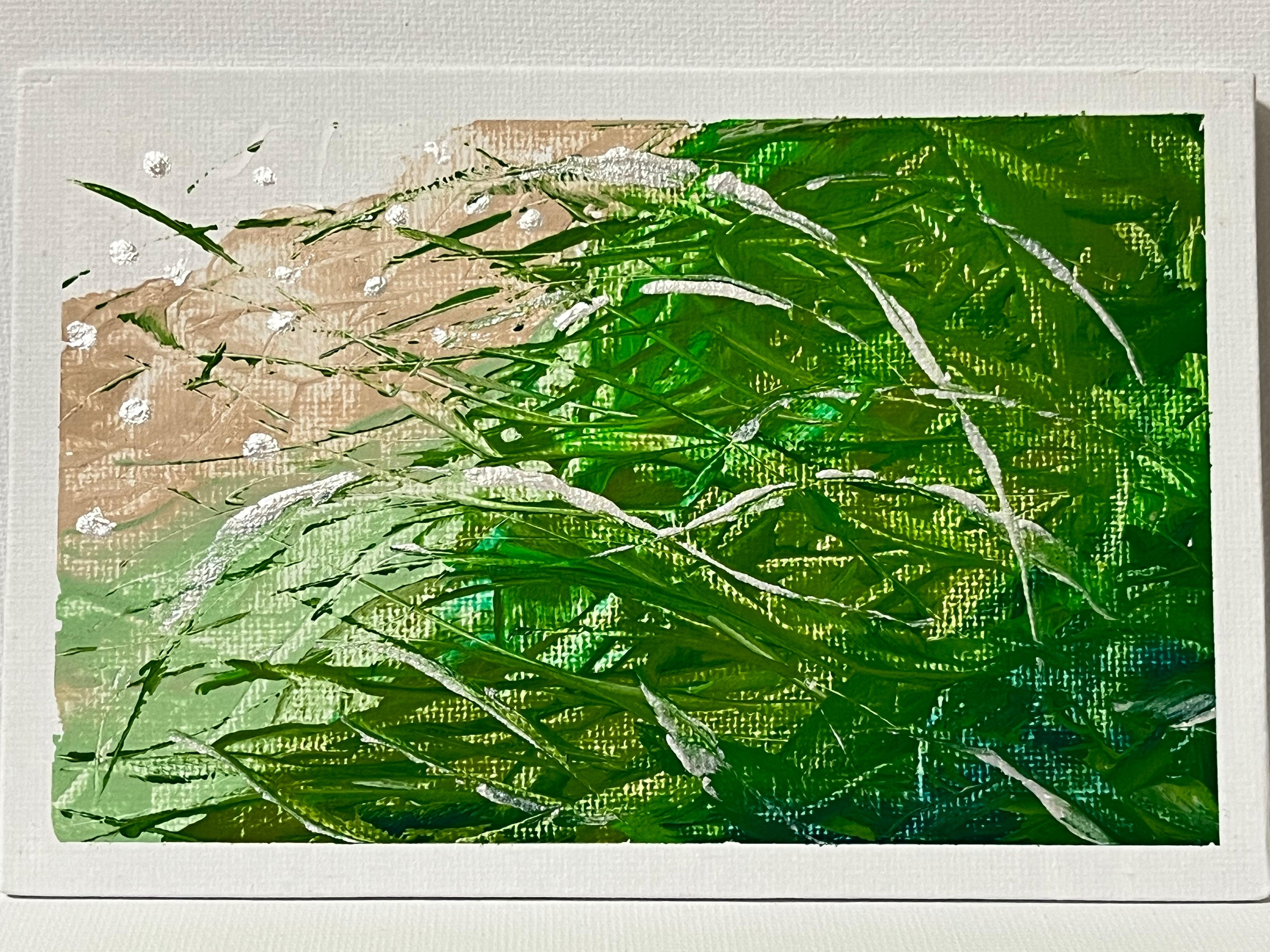 柔らかなグリーンのハーモニーが、穏やかな安らぎをもたらすアート作品です。自然の恵みを感じさせる深い緑と土の温もりが共演し、様々な風景を思い起こさせるこのデザインは、視覚的な魅力だけでなく、触れることで得られる心地よさも提供します。空間に優雅なリフレッシュ感をもたらし、特別なひとときを演出するための理想的なアイテムとして、お部屋を自然の息吹で満たします。