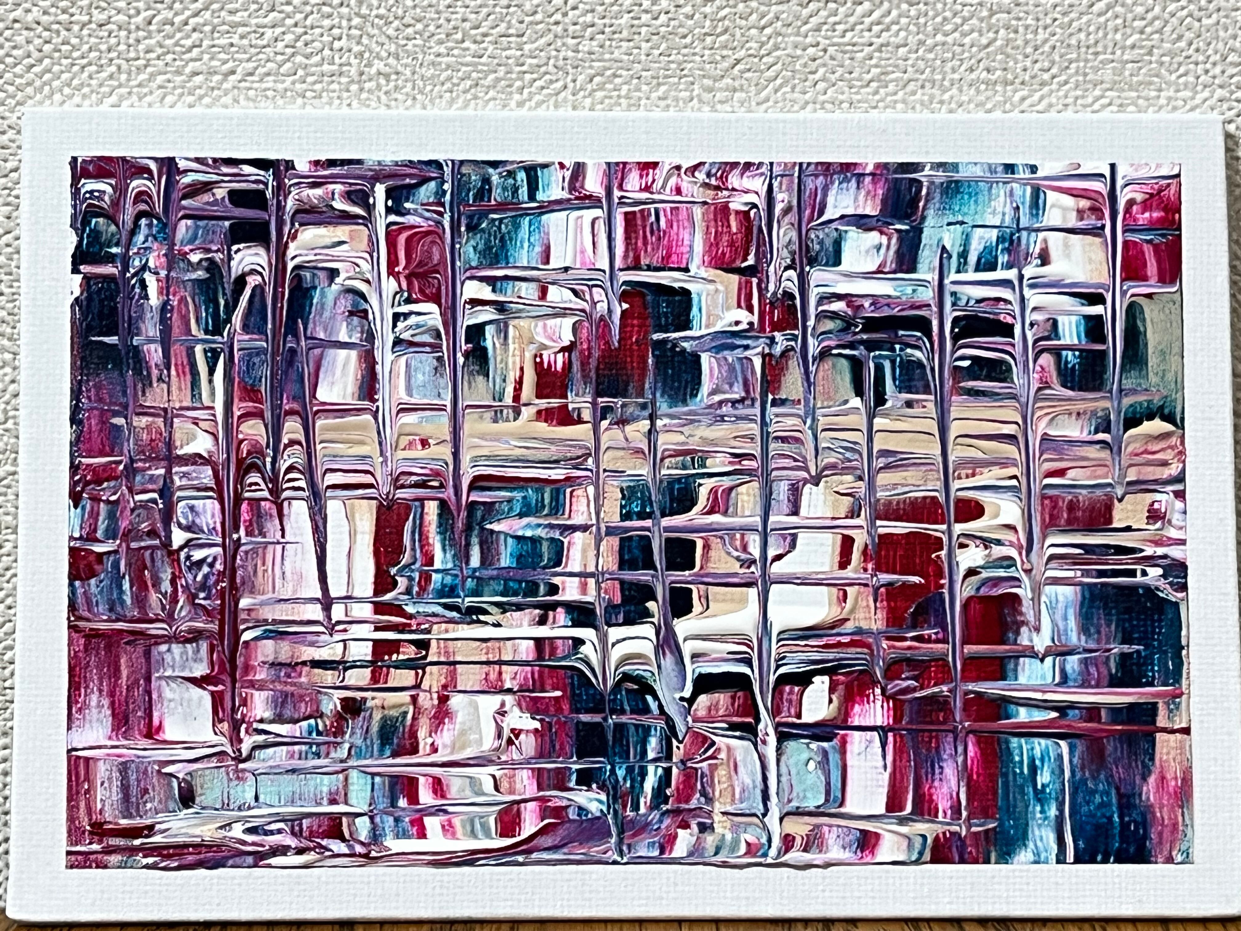 深い紅と青の雫が静かに重なり、心の奥にそっと灯りをともします。洗練されたテクスチャーと華やかな輝きが調和し、空間に温かみとエネルギーをもたらします。