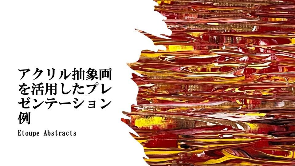 燃えるような赤と黄金の色彩が、優雅に流れる抽象アクリル画の画像データです。残り火のような温かな輝きが、心の奥に静かな情熱を灯し、日常に深い余韻とぬくもりを添える、文学的な一枚です。
